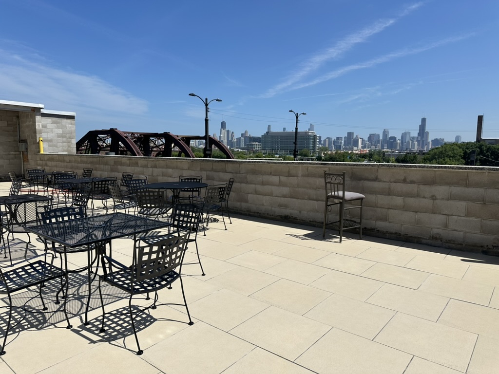 We offer a main hall with a bar. A stage area for a band and dancing. We also have an outdoor rooftop deck with views of downtown Chicago